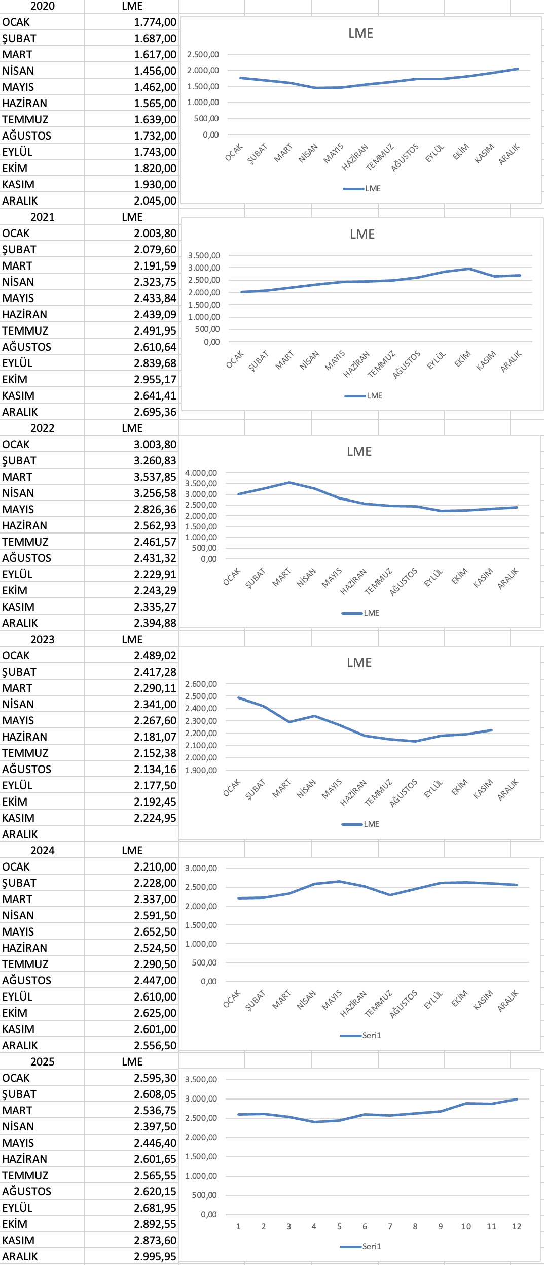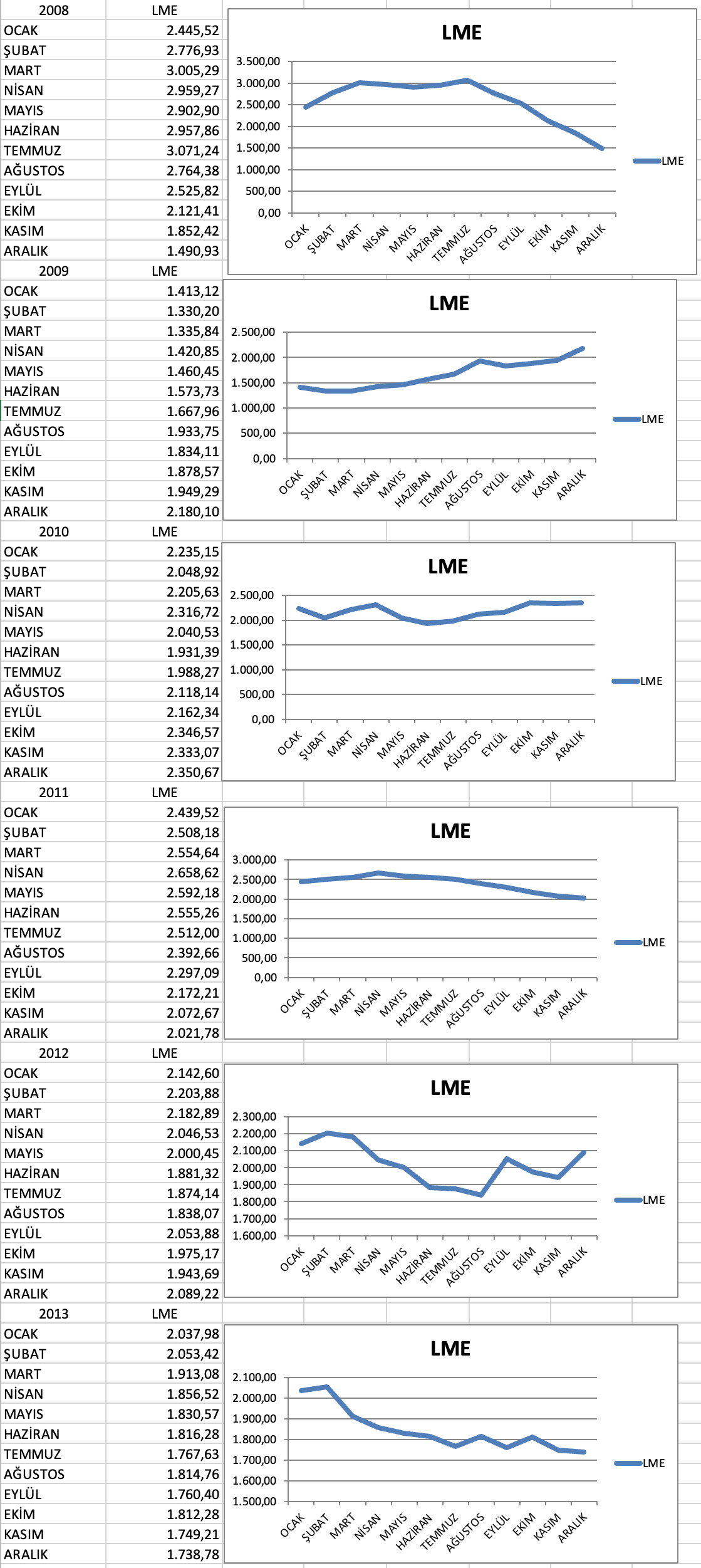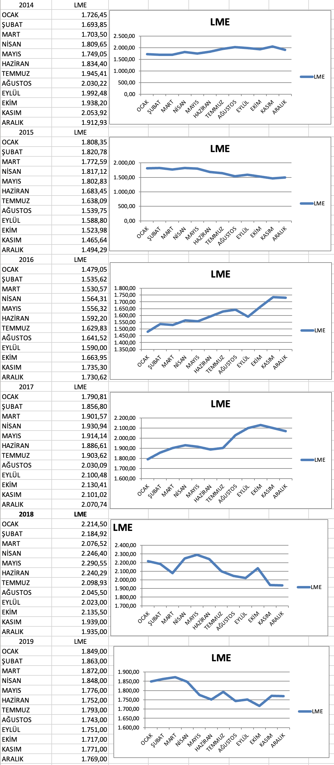 Dünyada ve ülkemizde endüstriyel metal satış fiyatları, Londra Metal Borsası’nda (LME) günlük olarak belirlenen fiyatlar üzerine “prim” eklenerek oluşturulmaktadır.